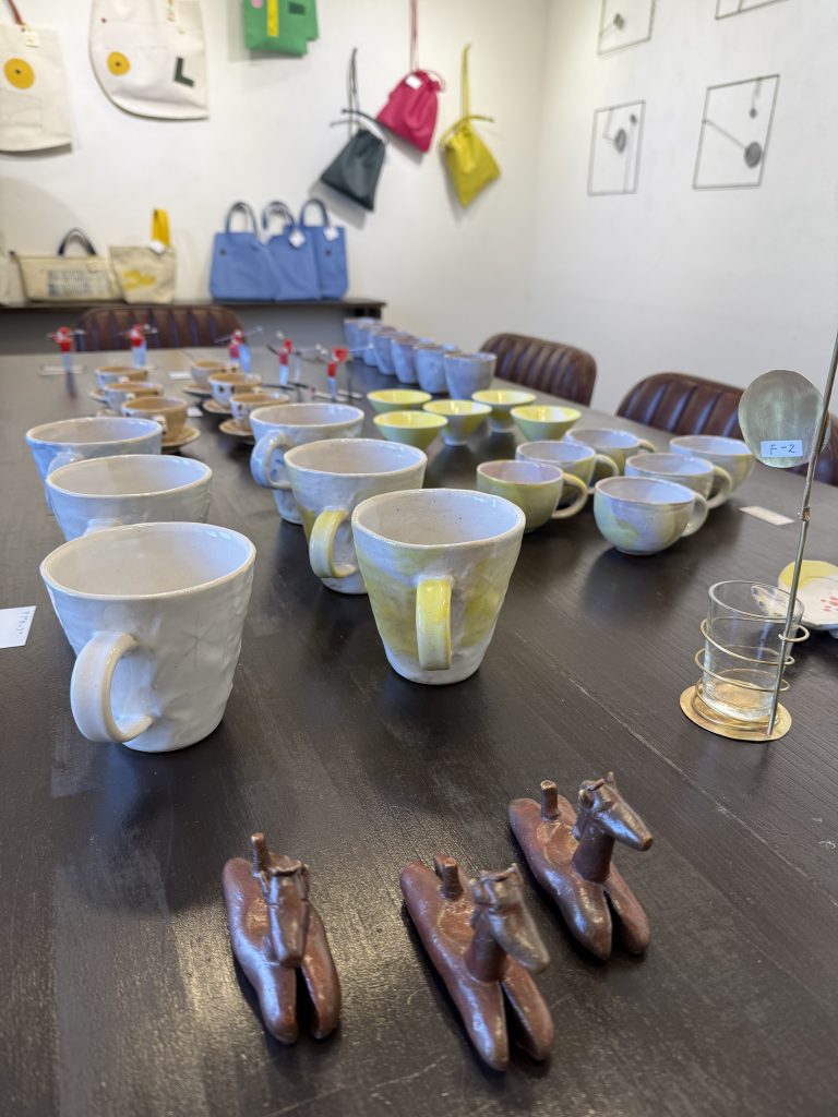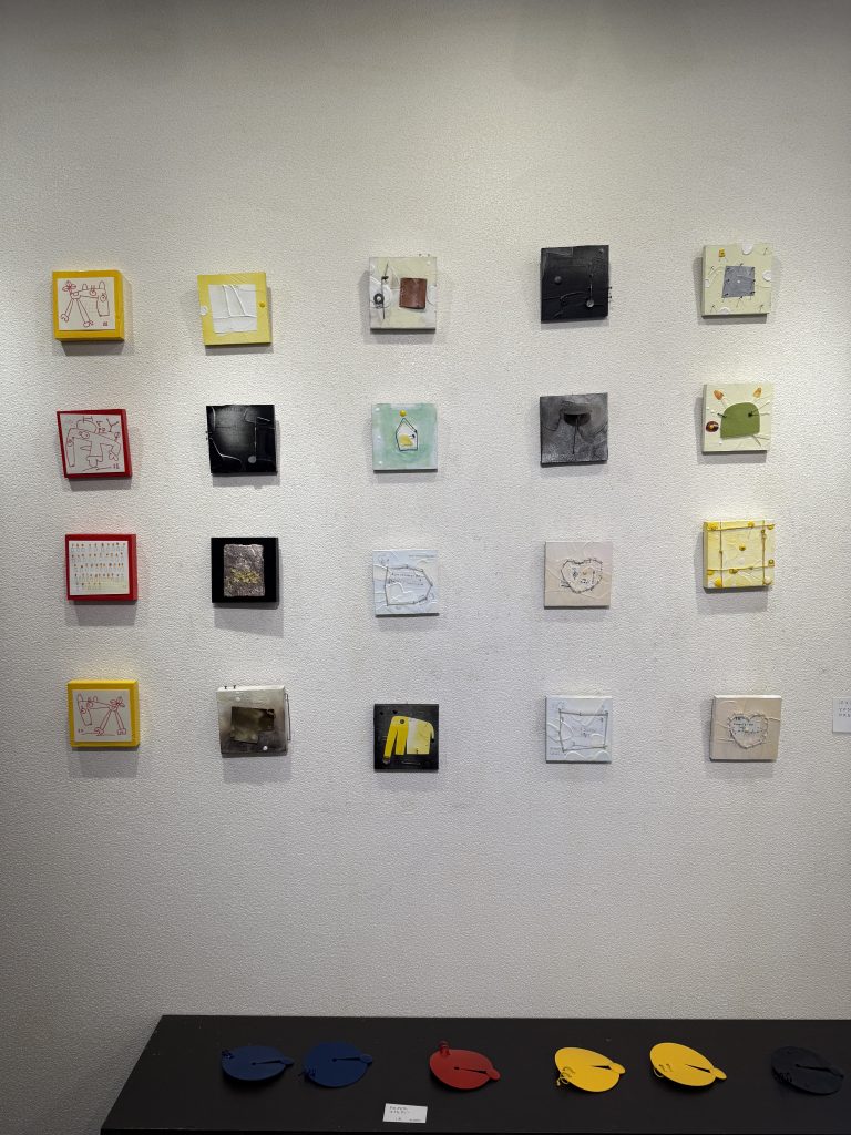 陶器、鉄彫、ガリ版版画、バッグ、アクセサリー。楽しい、面白い展覧会です。